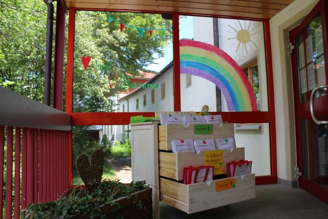 In der Kindertageseinrichtung bekommen unsere Kinder eine Vollverpflegung. Am Vormittag gibt es eine gleitende Brotzeit. Die Kinder dürfen sich ihre Brotzeit selber nehmen und zubereiten. Das Mittagessen wird in unserer hauseigenen Küche frisch gekocht. Da wir in unserer eigenen Küche täglich frisch kochen, können wir gesundheitsbedingte (Allergien, Unverträglichkeiten), kulturelle und religiöse Ernährungsbedarfe berücksichtigen. Den Kindern stehen in ihren Gruppenräumen und im Garten jederzeit Getränke zur Verfügung. Zudem nehmen wir am Projekt „EU-Schulprogramm-Obst und Gemüse“ teil und werden einmal wöchentlich mit biologisch angebautem Schulobst beliefert. Wir achten bei der Auswahl und Zusammenstellung der Speisen auf Frische und Ausgewogenheit. Dabei orientieren wir uns an dem „Qualitätsstandard für Verpflegung in Tageseirichtungen für Kinder“ der Deutschen Gesellschaft für Ernährung (DGE) und den „Bayerischen Leitlinien Kitaverpflegung“ des Bayerischen Staatsministeriums für Ernährung, Landwirtschaft und Forsten